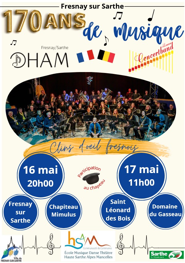 L’Orchestre d’Harmonie des Alpes Mancelles (OHAM), dirigé depuis 1993 par Laurent Rameau-Beunache, célèbrera ses 170 ans d’existence le temps d’un weekend festif. Pour l’occasion la ville accueillera les musiciens du Concertband de Leuven (Belgique) qui viendront rejoindre les effectifs locaux.