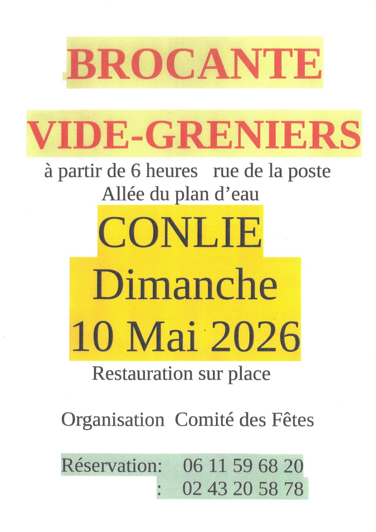 Brocante organisée par le Comité des Fêtes de Conlie.