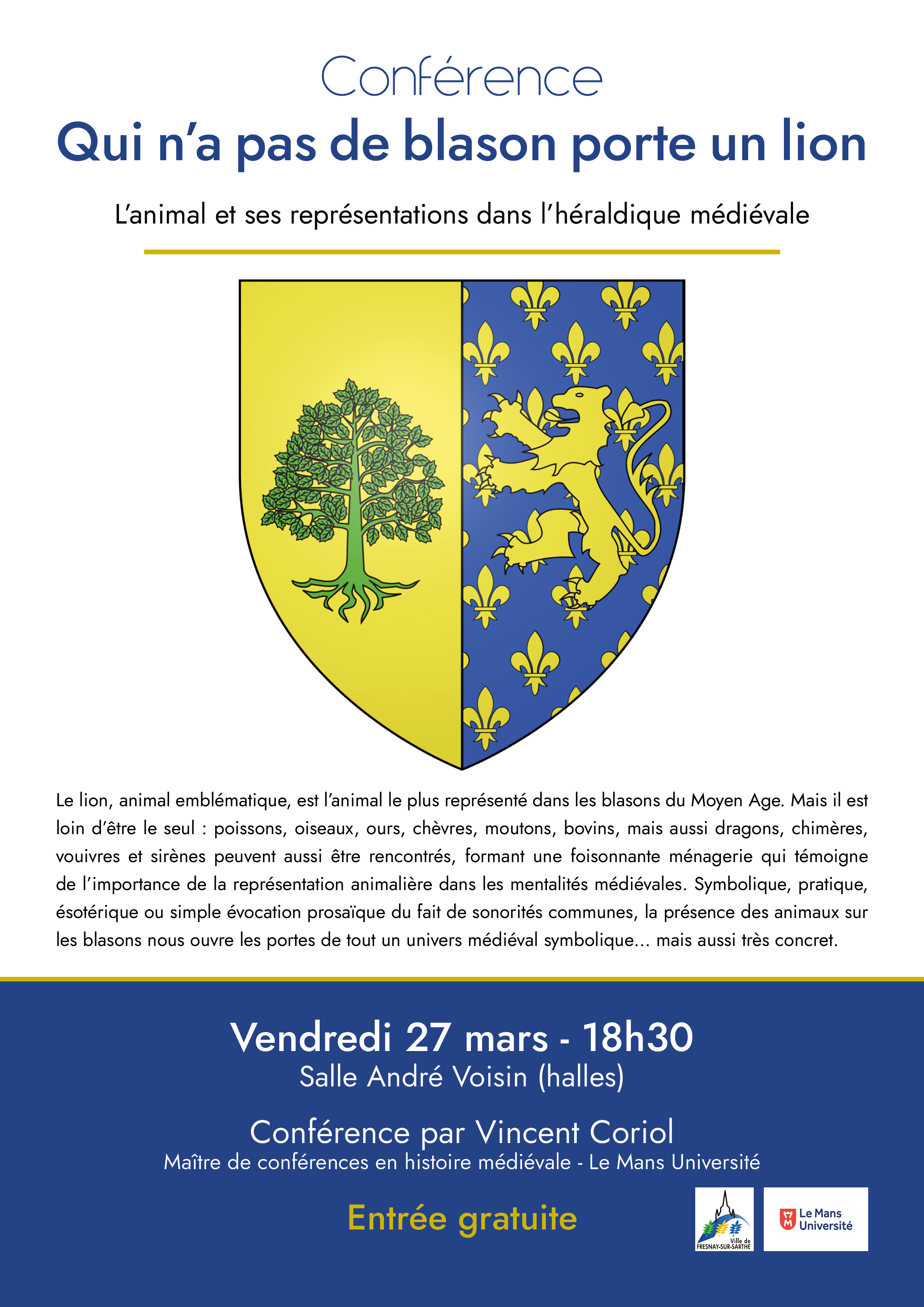 Vendredi 27 mars à 18h30 salle André Voisin (halles) à Fresnay-sur-Sarthe. Entrée gratuite.