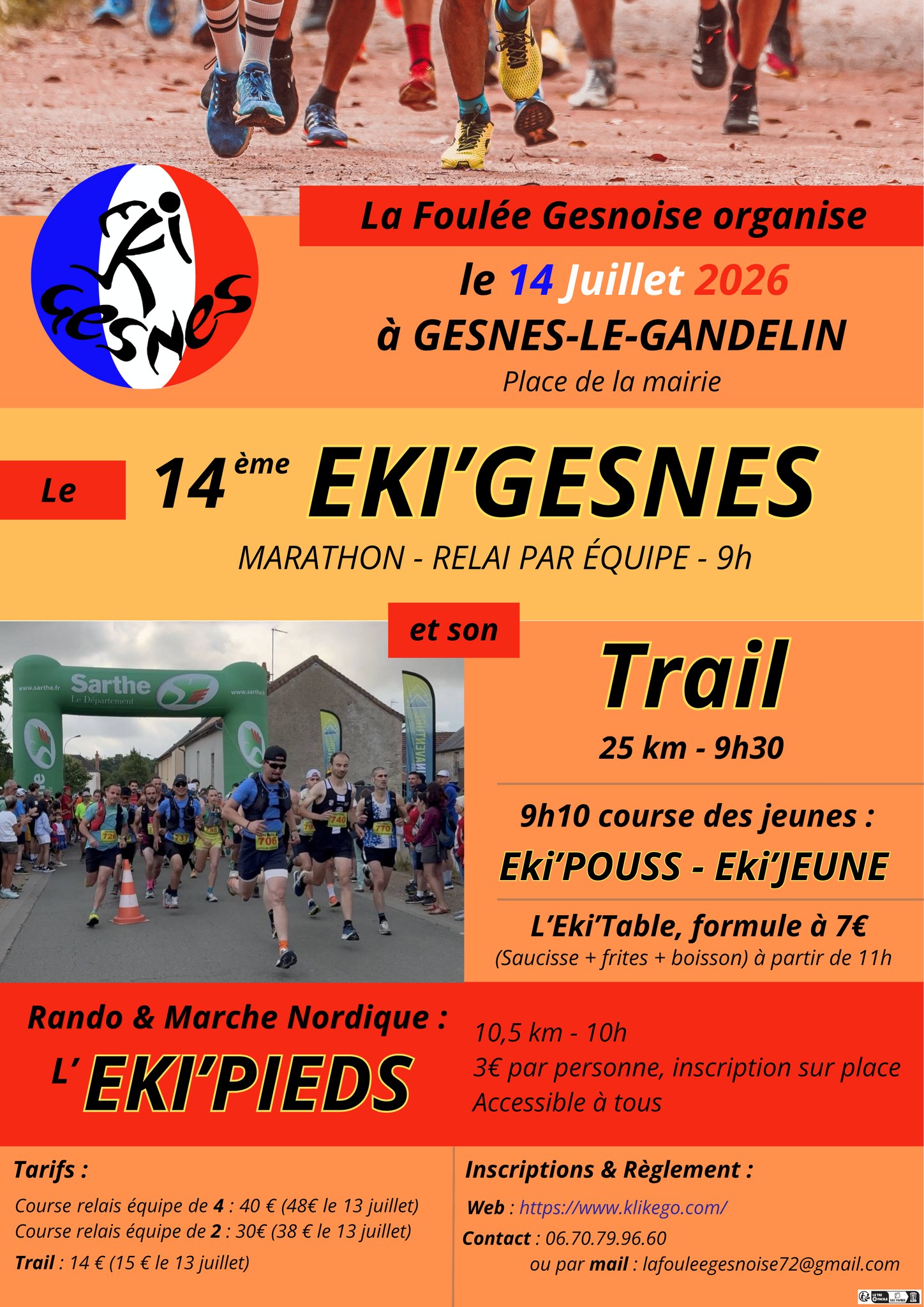 Plus d’informations et inscriptions auprès l’association La Foulée Gesnoise au 06 70 79 96 60 ou par mail via le formulaire de contact ou sur klikego.com.