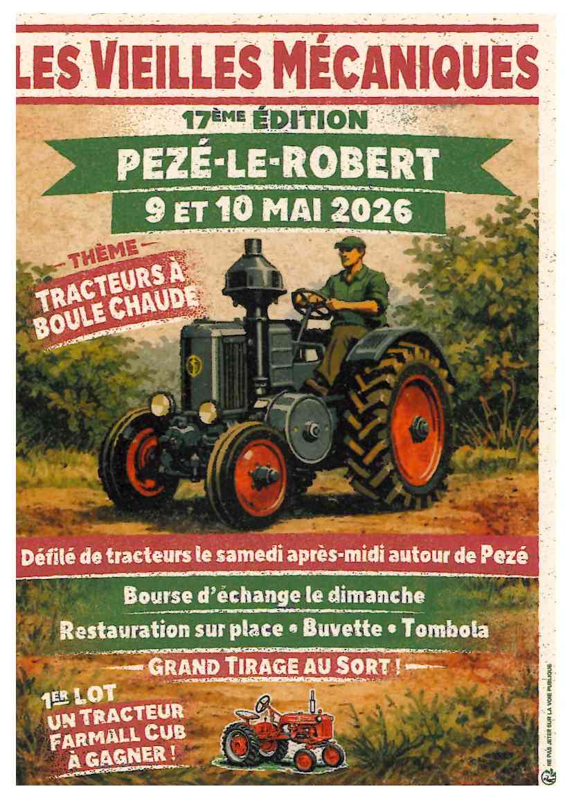 Samedi 9 et dimanche 10 mai, la Commune de Pezé-le-Robert accueille la 17ème édition des Vieilles Mécaniques du Maine Normand. 🚜
