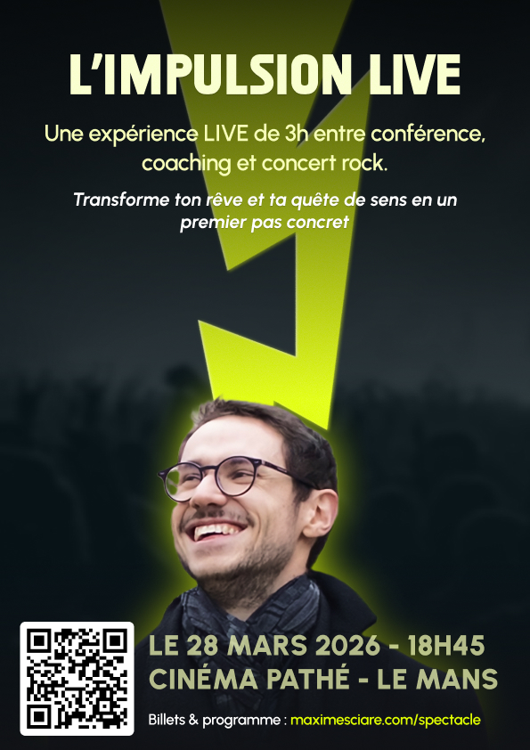 Le format mêle donc conférence, musique live et coaching. Les 140 participants recevront un livret comprenant des concepts clés et des questions de coaching auxquelles ils répondront en direct. L’objectif est d’aider chacun à transformer une quête de sens ou un rêve encore flou en un premier pas concret et structuré.